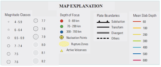 Map 1: Seismic and volcanic activity, and slab depth in a region of the Andes